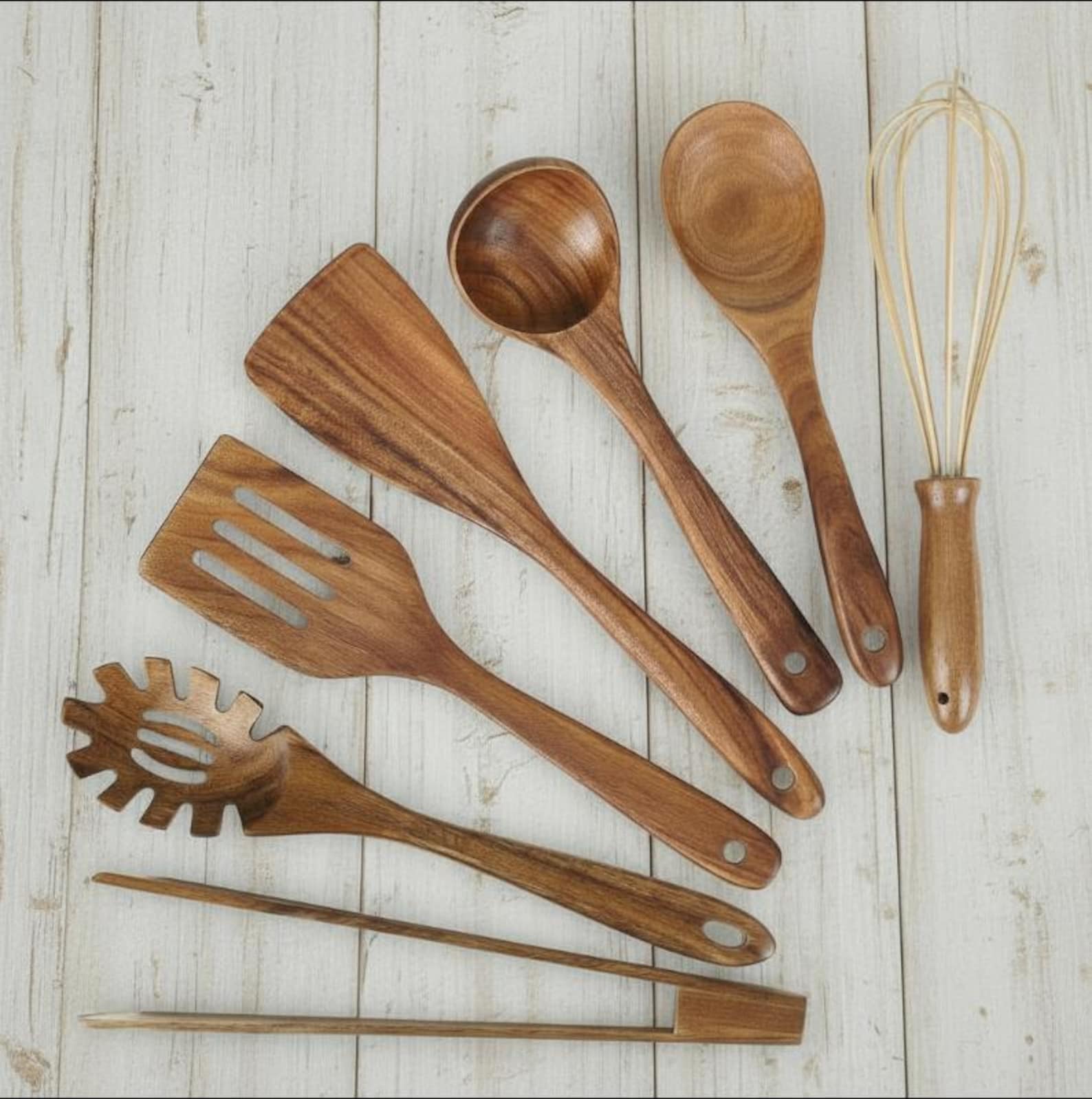 7-Piece Natural Teak Wood Kitchen Utensil Set – Handcrafted Cooking Tools with Food-Safe Finish