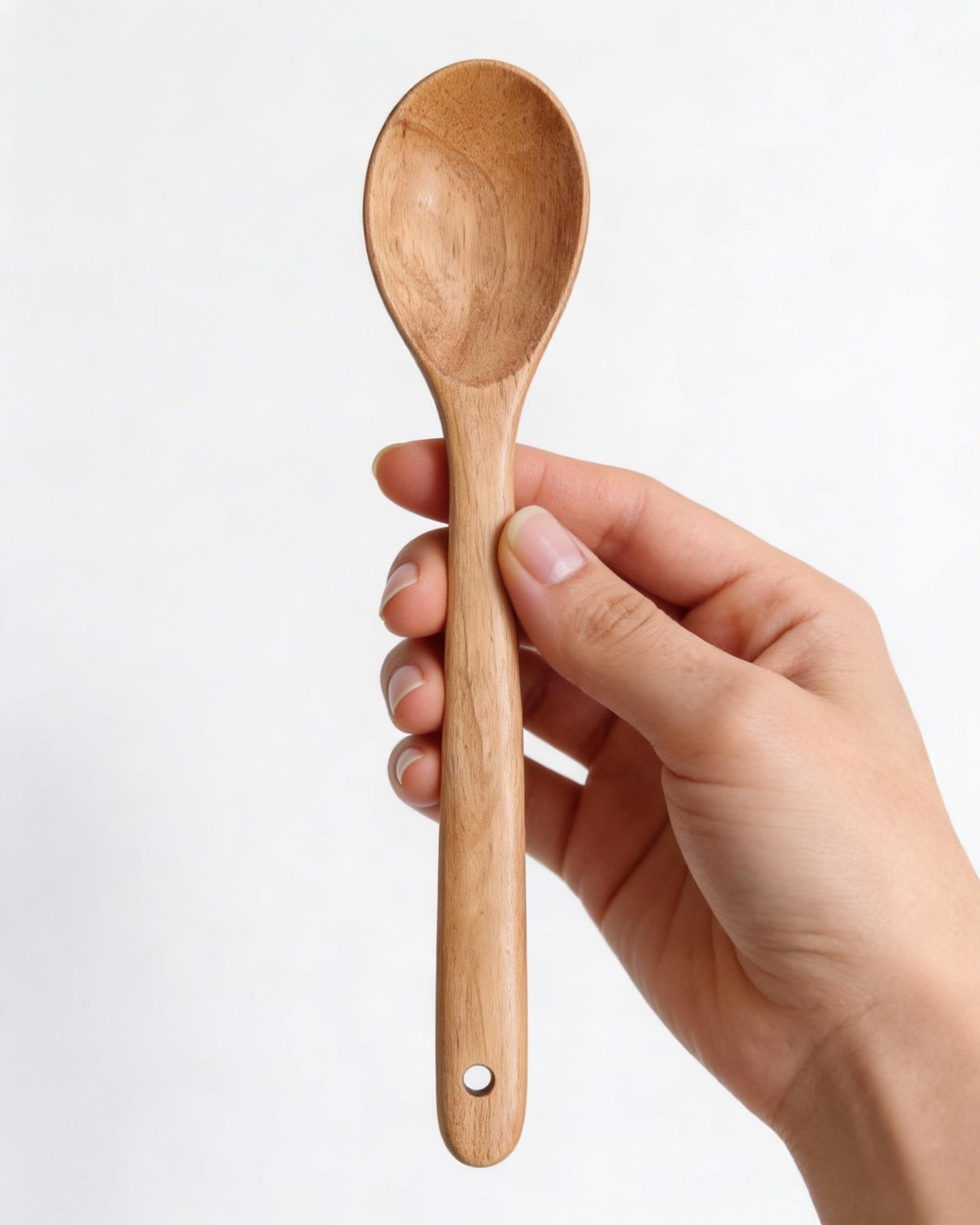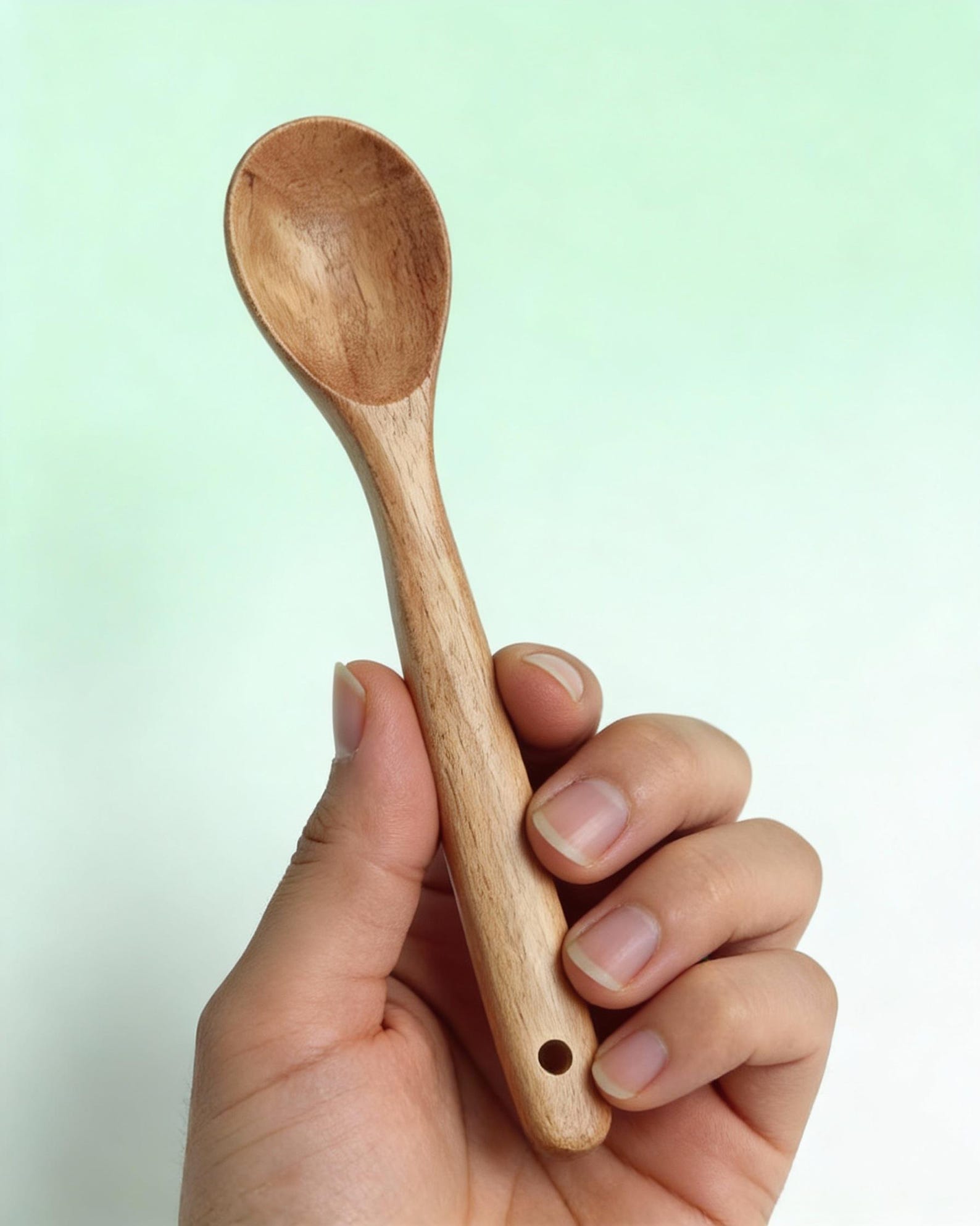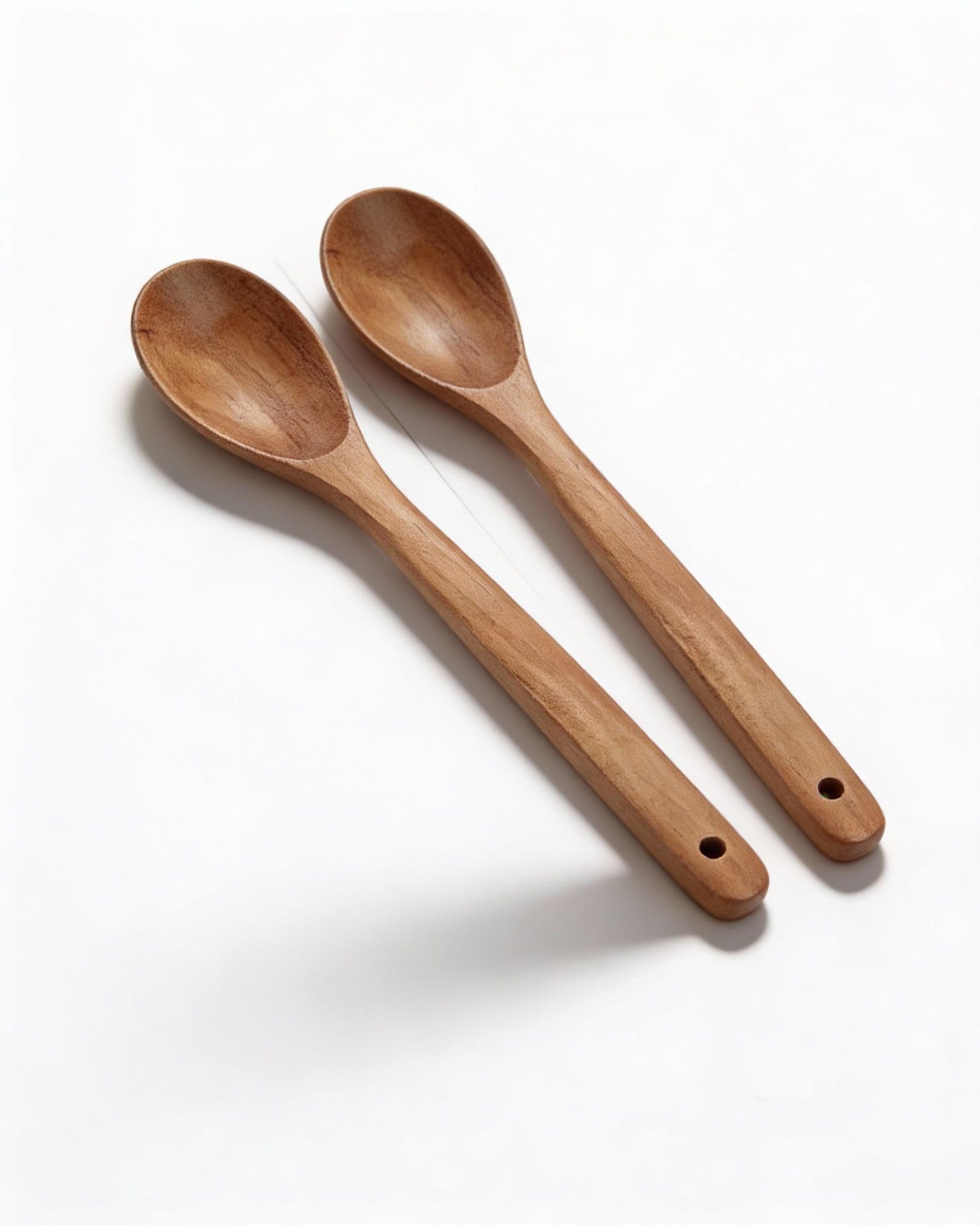 Custom engraved wooden spoon set handcrafted from neem wood. Available with personalized engraving — name, initials, or short message. Neem wood is a naturally dense and durable hardwood suitable for kitchen use. Food-safe finish. Each spoon is individually shaped and finished by hand. Personalization available — contact us for engraving details.