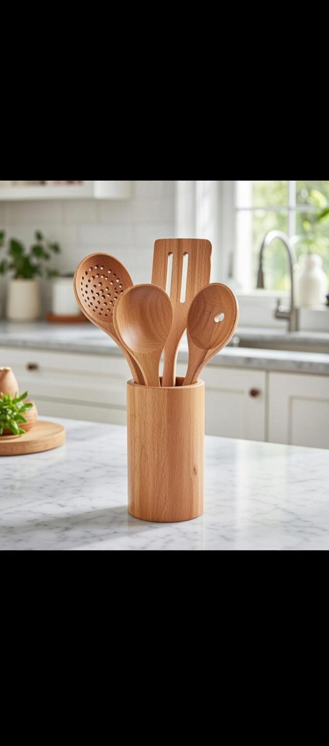 10-piece kitchen utensil set made from natural teak wood. Includes a variety of cooking and serving tools for everyday kitchen use. Teak wood is naturally durable, moisture-resistant and suitable for daily cooking. Food-safe natural finish on all pieces. Each item is individually crafted — natural variation in wood grain and tone is expected between pieces.