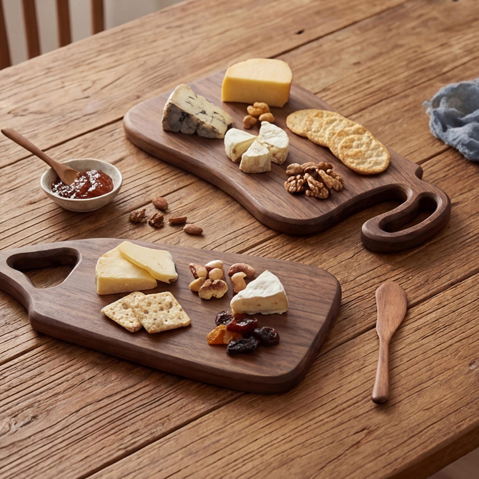 Solid Walnut Wood Cutting Board – Handcrafted Single-Piece Serving Board with Handle